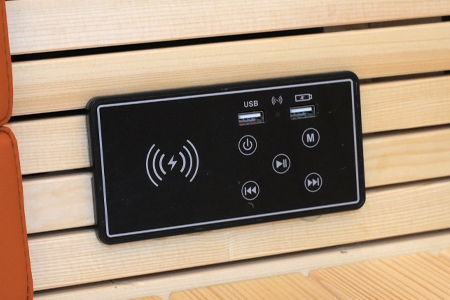 人体工程学半躺式座椅:人体工程学设计,符合人体背部弯曲,汗蒸更加舒适。 搭配欧洲进口全光谱理疗管(释放远、中、近三种红外光波),对后背进行专门理疗,有效增强汗蒸效果。 理疗管表面加装有耐高温植绒护网。 |