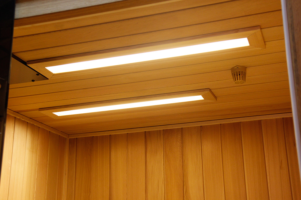 桑拿LED和长条顶灯:造型优美,美观漂亮,光源为飞利浦光源,寿命长久。 |