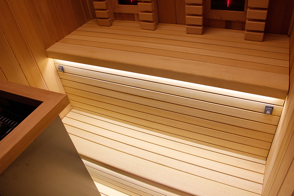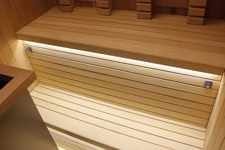 桑拿双层座椅及暖光灯带:采用18mm厚实木制作,做工非常精致,材料厚实,稳固如山。暖光灯带,让桑拿房看起来更加温馨,惬意。 |