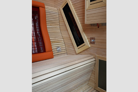 半躺式座椅:人体工程学设计,做工精细,符合人体背部与臀部的生理弯曲,汗蒸更加舒适。靠背后面装配有欧洲进口的理疗管,可以针对背部单独进行加热,配合耐高温硅胶软垫,极具亲肤感,提供更加舒适的汗蒸享受。 |