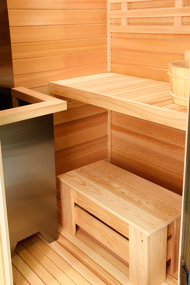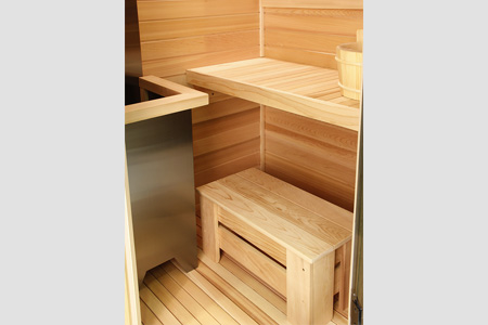 桑拿座椅及活动凳:采用与房体同材质板材制作,厚度为18mm厚板材,做工精细。 |