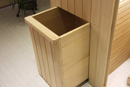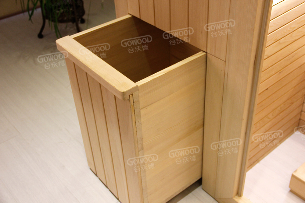 隐藏式可推拉收纳箱:隐藏式设计,当收纳箱推进到房体时,不影响桑拿房的外观,拉开时可以收纳物品。 |