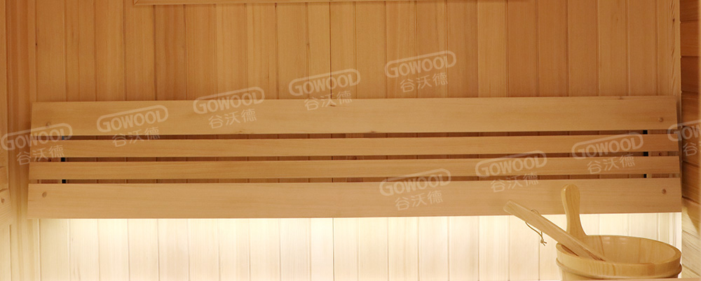 个性化圆弧座椅:采用18mm厚实木制作,做工精致,材料厚实,稳固结实。暖光灯带,让桑拿房看起来更加温馨,惬意。 |