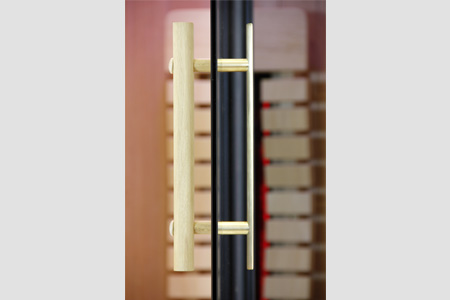 金属与木质门把手:一半为金属材质,一半为木制,做工精细,对比强烈。 |
