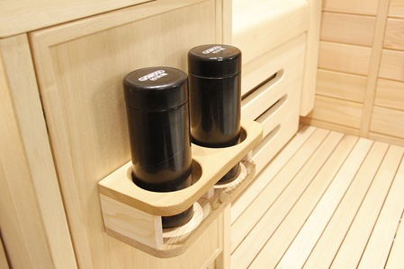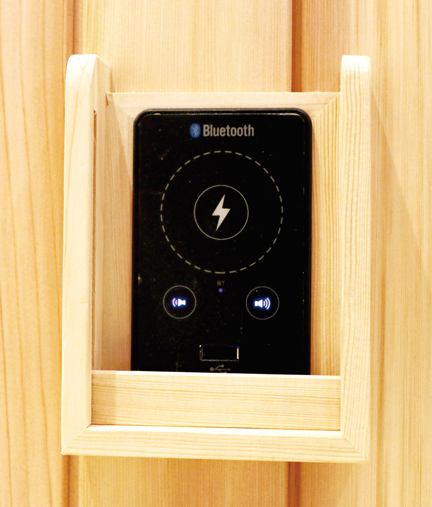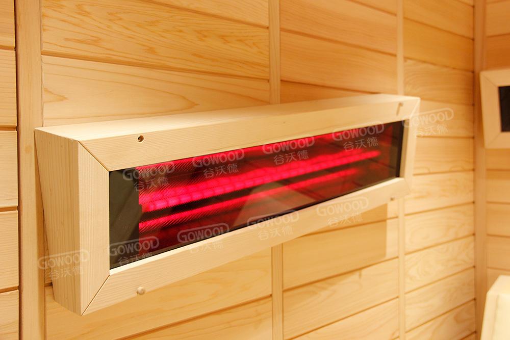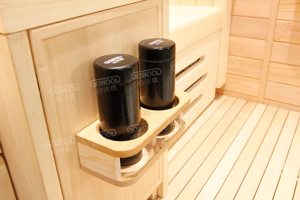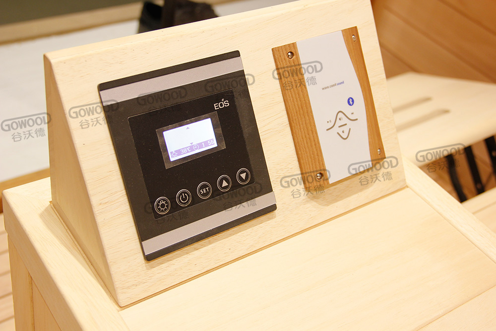 12mm厚香柏木或铁杉木桑拿板、18mm厚阿巴奇木或铁杉凳板、德国EOS汗蒸控制器、德国进口理疗管、蓝牙音乐播放器、谷沃德音响、电动升降脚托、商务舱豪华座椅、喜马拉雅盐晶灯、意大利喀斯玛合页、银色门把手、踏板