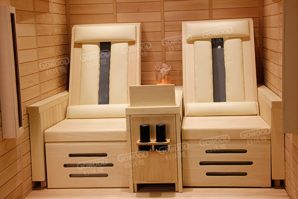 豪华座椅:造型优美、做工精细、背部加装有德国进口理疗管、表面带耐高温加绒护网,配置耐高温软垫,汗蒸时背部更舒适放松。 |
