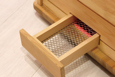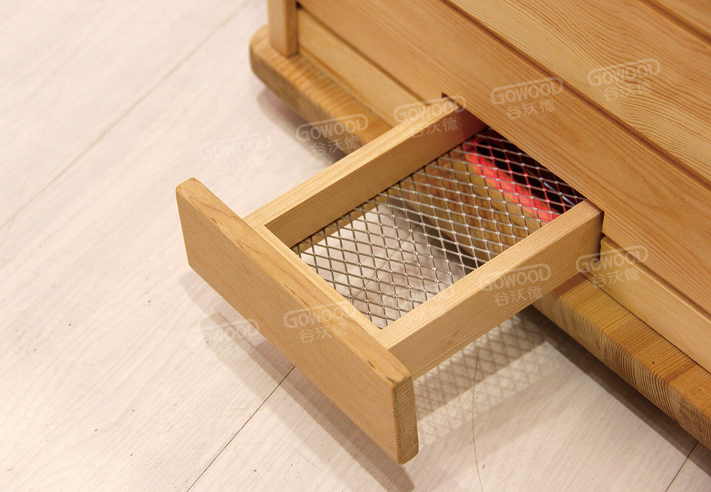 抽屉式铝网药包盒:可以在此盒内放置足浴药包,通过远红外加热方式,使药力弥漫渗透进人体肌肤,增加远红外足浴的效果。 |