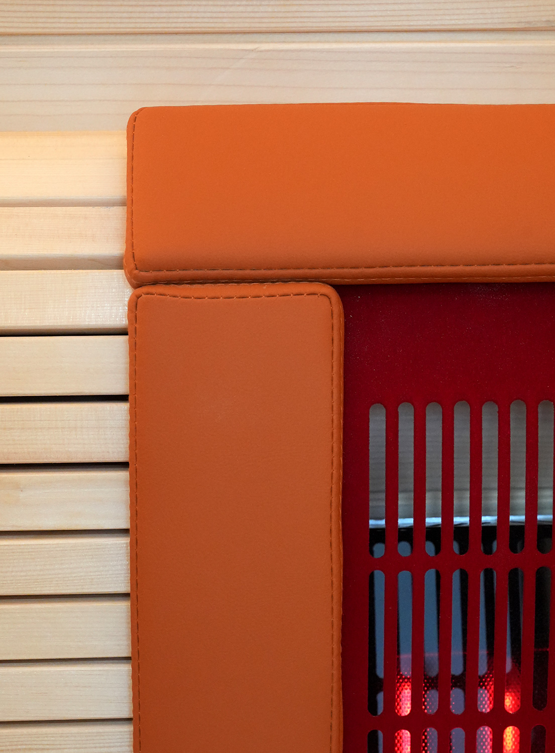 人体工程学半躺式座椅:人体工程学设计,符合人体背部弯曲,汗蒸更加舒适。 搭配欧洲进口全光谱理疗管(释放远、中、近三种红外光波),对后背进行专门理疗,有效增强汗蒸效果。 理疗管表面加装有耐高温植绒护网。 |