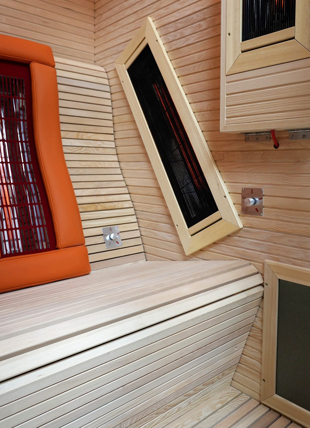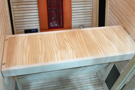 8mm厚铁杉木桑拿板,新款墙板(款式新颖,符合当下极简风格)、18mm厚实木凳板、柚木边框。德国EOS汗蒸控制器,日本进口碳纤维丝远红外加热板,欧洲进口理疗管。专利设计多功能翻转小桌板,食品级耐高温硅胶软垫(可选黑、灰、橙颜色),耐高温防烫植绒护网,天地轴隐藏式五金合页(安全美观),4+4mm夹胶钢化玻璃, 喜马拉雅盐晶灯(内置LED暖光灯带无频闪),蓝牙音乐播放器,高品质音响,谷沃德门把手。