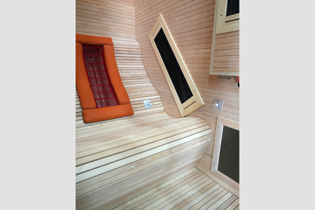 全躺式座椅:人体工程学设计,做工精细,符合人体背部与臀部的生理弯曲,汗蒸更加舒适。靠背后面装配有欧洲进口的理疗管,可以针对背部单独进行加热,配合耐高温硅胶软垫,极具亲肤感,提供更加舒适的汗蒸享受。 |