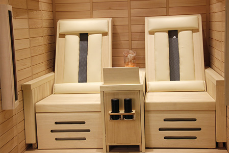 豪华座椅:造型优美、做工精细、背部加装有德国进口理疗管、表面带耐高温加绒护网,配置耐高温软垫,汗蒸时背部更舒适放松。 |