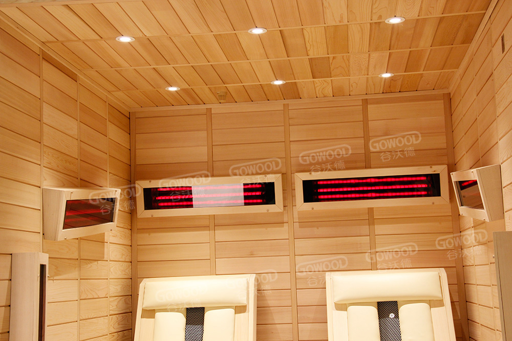 12mm厚香柏木或铁杉木桑拿板、18mm厚阿巴奇木或铁杉凳板、德国EOS汗蒸控制器、德国进口理疗管、蓝牙音乐播放器、谷沃德音响、电动升降脚托、商务舱豪华座椅、喜马拉雅盐晶灯、意大利喀斯玛合页、银色门把手、踏板